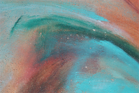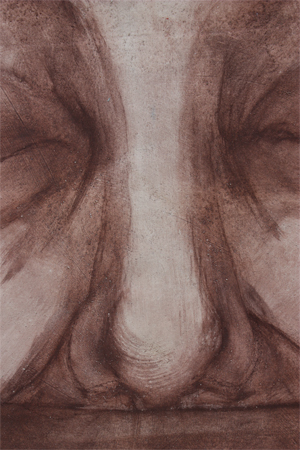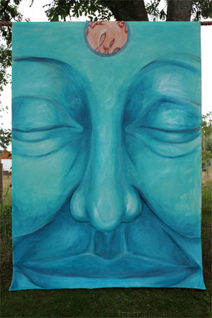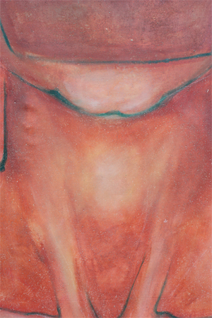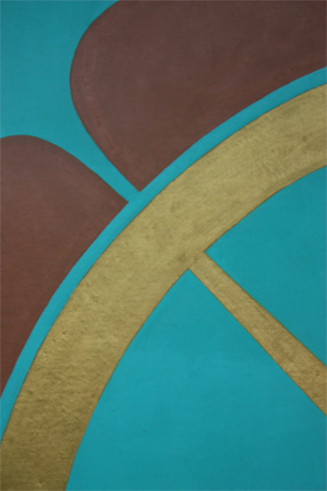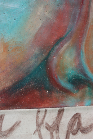 Maar het liep anders. Al tijdens de weekenden liep ik aan tegen...........m’n eigen gebral! Steeds hoorde ik mezelf dingen herhalen. Soms had het een functioneel en begeleidend karakter, maar over het algemeen was het behoorlijk overbodig, te sturend, te oordelend, te krampachtig. Eerst wilde ik er niet aan, maar al snel werd het me duidelijk. De doeken die nog zouden volgen in deze serie zou ik vooral voor mezelf gaan maken. Ze zouden deel uitmaken van een proces dat nog helemaal niet afgerond, maar juist nog steeds in volle gang was en mijn aandacht meer dan ooit nodig had.